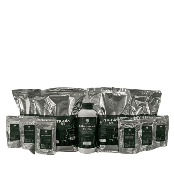 TK-Bio 100 é um meio de cultura desenvolvidos para a multiplicação de microrganismos, principalmente bactérias de uso agrícola, através de sistemas de multiplicação aerados e controlados. Para multiplicações de 100 litros.